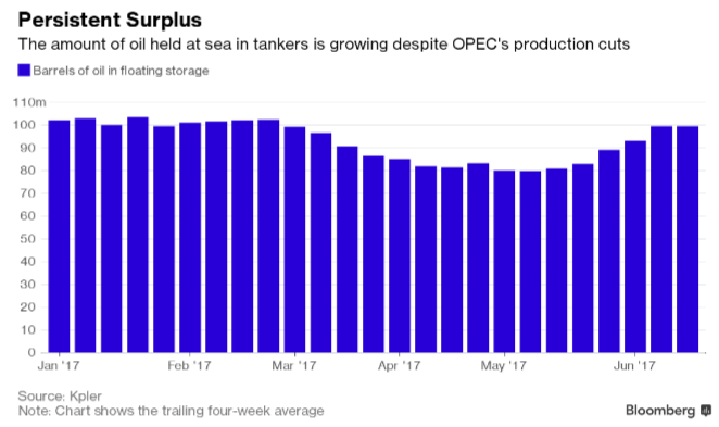 Energy - Crude oil prices are trading at 7-month lows this morning following data showing the amount of oil stored in tankers reached a new high of 111.9 million barrels earlier this month. Note the chart below is showing the 4-week average, which hasn’t yet made a...