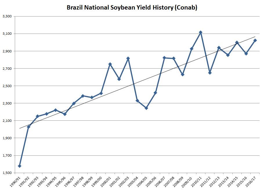 Grains - On Thursday Brazil’s Conab issued a soybean production estimate of 102.4 mmt, and Friday WASDE followed along maintaining their 102 mmt production estimate. I thought it might be worth pointing out that both of these estimates seem to be implying a sub-trend...