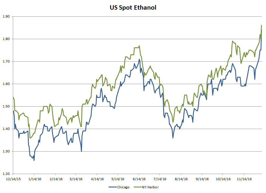 Grains - While soyoil/biodiesel has been the largest beneficiary of news related to RFS mandates, corn/ethanol trade is starting to get my attention here lately. While it has gone largely unnoticed by many, ethanol prices are absolutely en fuego lately. The chart...