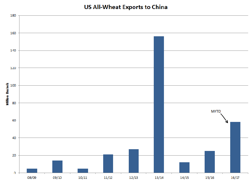 Grains - While reviewing yesterday’s export inspections data, one thing stood out to me. Over the past several weeks/months, we’ve continued to see ongoing and consistent wheat shipments to China. The chart below shows that MYTD export shipments are the strongest...